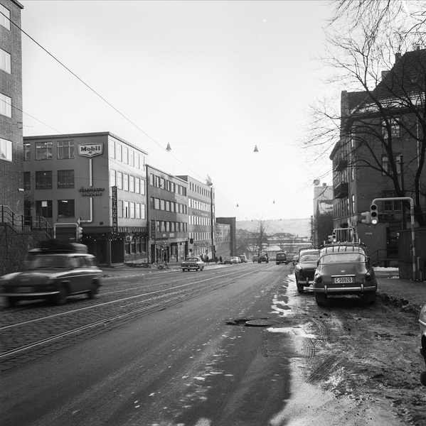Et annet bilde fra Digitalt Museum tatt i 1966 viser hvordan gata så ut den gangen, og vi kan se restaurant-skiltet på utsiden.